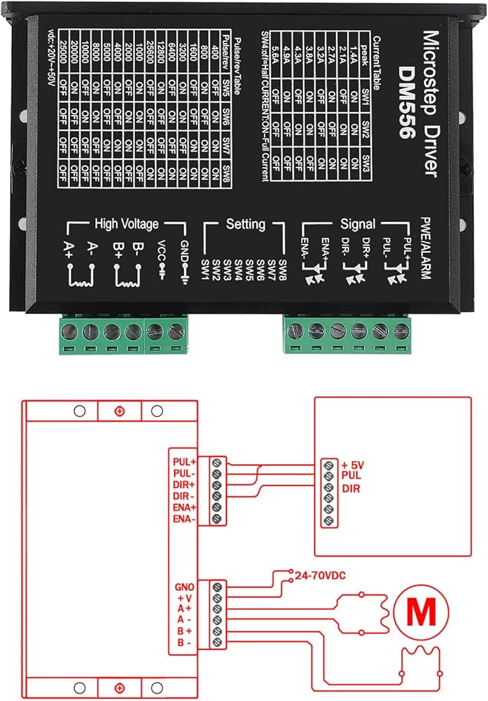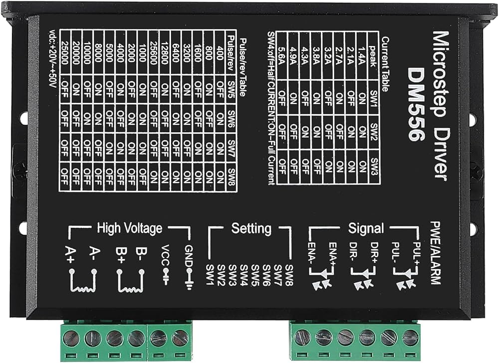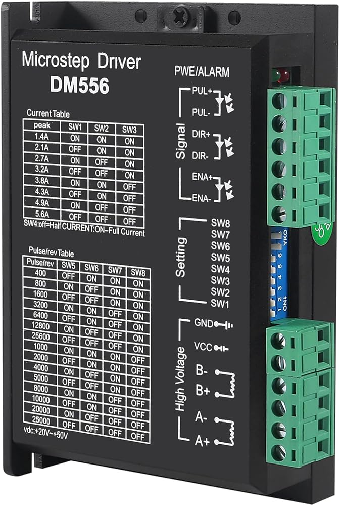 - CNC Digital Stepper Driver DM556 Stepper Motor Controller 2-Phase Stepper Motor Driver 20-50V DC Max 5.6A 128 Subdivision