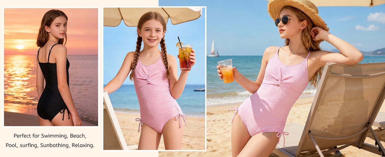 Size Fit : It's an ideal option for kids swimsuits and teen swimsuits of different growth stages. Designed for girls bathing suits size 10-12, girls swimsuits size 14-16 and other sizes, fitting girls aged 7-8, 9-10, 11-12, 13-14, 15-16.