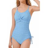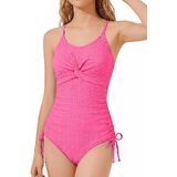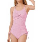 Unique Design: This girls one piece swimsuits features unique twist cross, embossed pattern and elegant U-neck, cute drawstring bow. Solid color, double-layer fabric and fully lined structure, it's non see-through and combines trendy style with modest design perfectly.