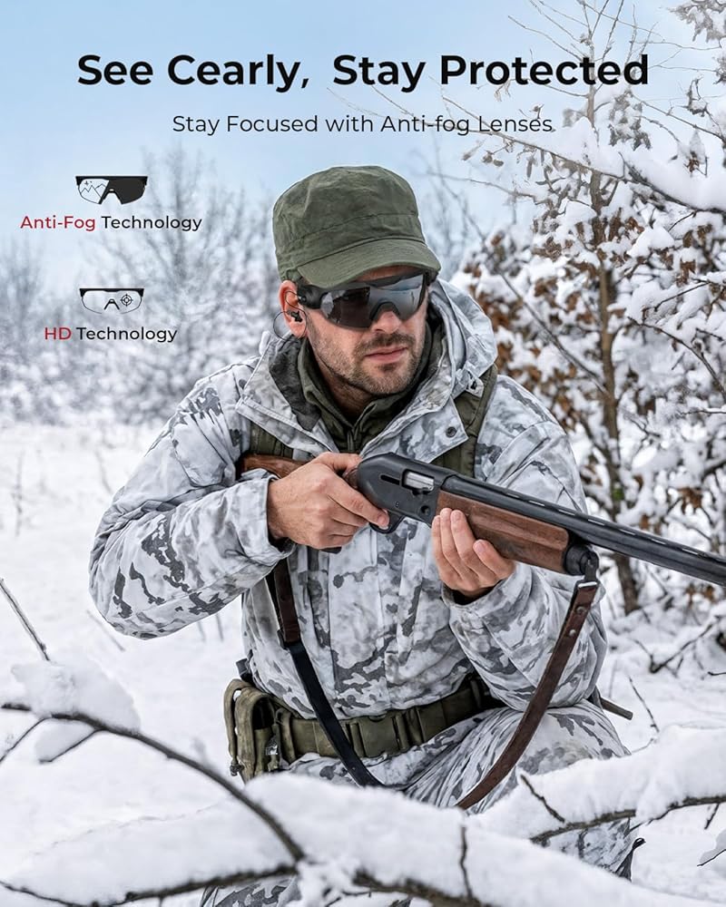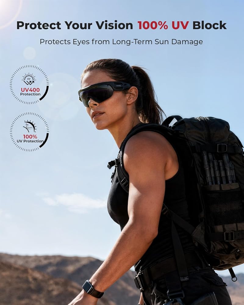 Anti-Fog & 100% UV Protection: ONNAIS tactical safety glasses advanced anti-fog technology keeps your vision clear in humid or rainy conditions, while lenses provide 100% UVA and UVB protection for safe, prolonged outdoor use.