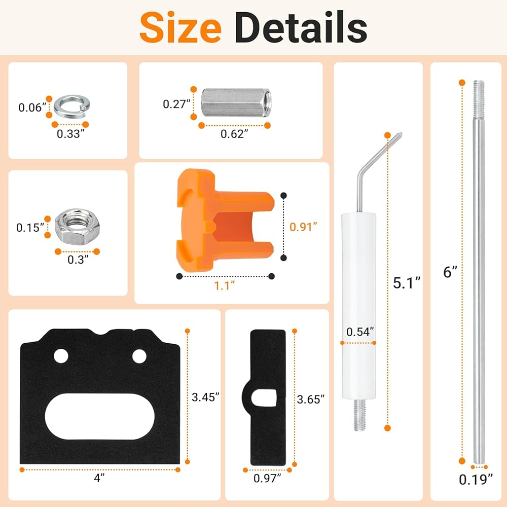 【Compatibility】The 5780 electrode insulator assembly, Z2000 gauge and 51304 gasket are compatible with Beckett AF/AFG/SF/AR/SR and AFII burners. A single installation restores ignition timing, air-fuel ratio and static pressure to factory standards in one go.