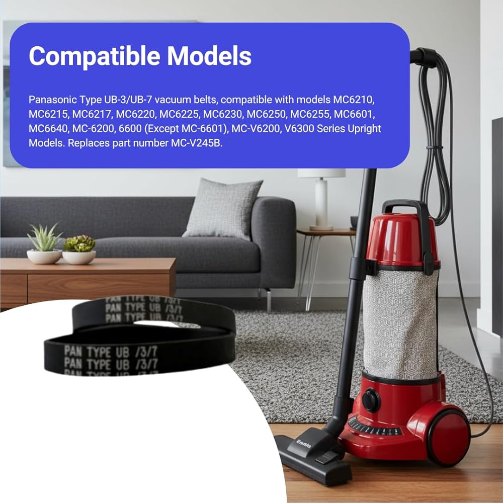 • COMPATIBLE MODELS – Compatible with Panasonic Type UB-3/UB-7 models, fits Panasonic MC6210, MC6215, MC6217, MC6220, MC6225, MC6230, MC6250, MC6255, MC6601, MC6640, MC-6200, 6600 (except MC-6601), MC-V6200, V6300 Series Upright Models. Replaces part number MC-V245B. ✖ NOT FIT: MC-6601.