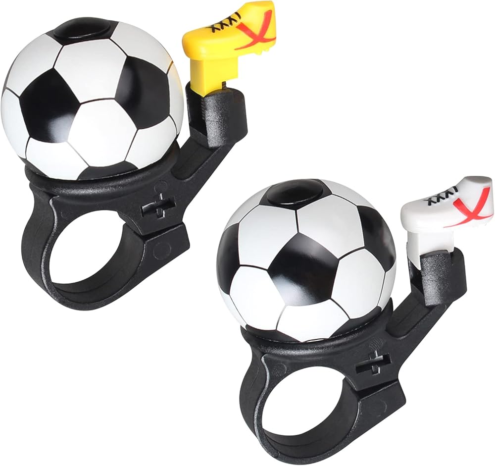 【Football Design】Cycling bell with football design space saving and no burden for kids bike, 1.96x1.57inch in size, built-in spring paddle button operate freely, convenient for riders.