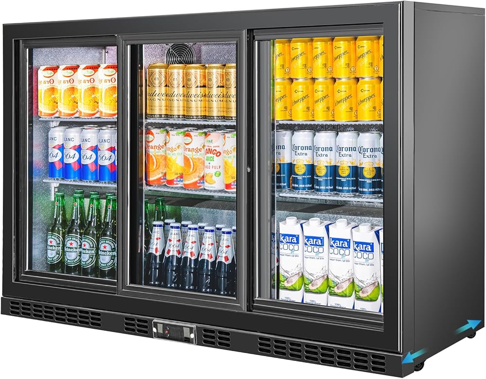Back Bar Cooler with 3 Sliding Glass Doors 10.5 Cu.ft. Commercial Beverage Refrigerator ETL with 6 Casters Black Drink Fridges for Beer, Wine,Soda, Drinks