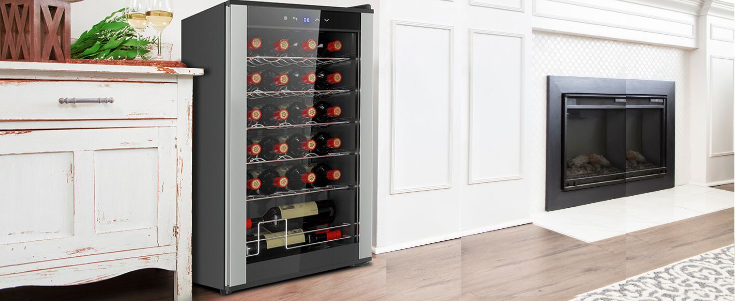 ADJUSTABLE STORAGE - The Koolatron 24 Bottle wine cooler features stainless steel racks that can be adjusted to accommodate larger bottles & non-standard shapes. This flexibility allows you to organize your wine collection to fit various bottle sizes, providing a versatile storage solution for those who prefer an adaptable system for different types of beverage.