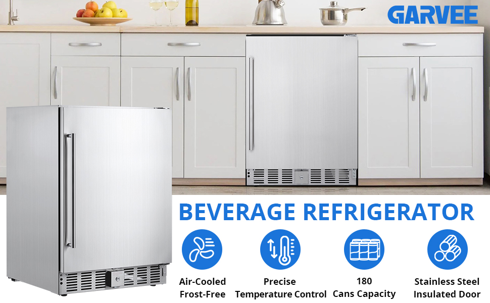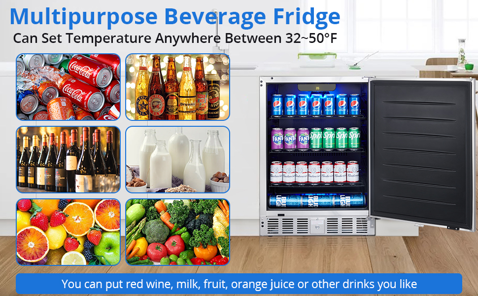 【Ample Storage Capacity】24 in beverage fridge with a capacity to hold up to 127 cans, which provides ample storage space for a variety of beverages, ensuring you always have a well-stocked selection for yourself and your guests.