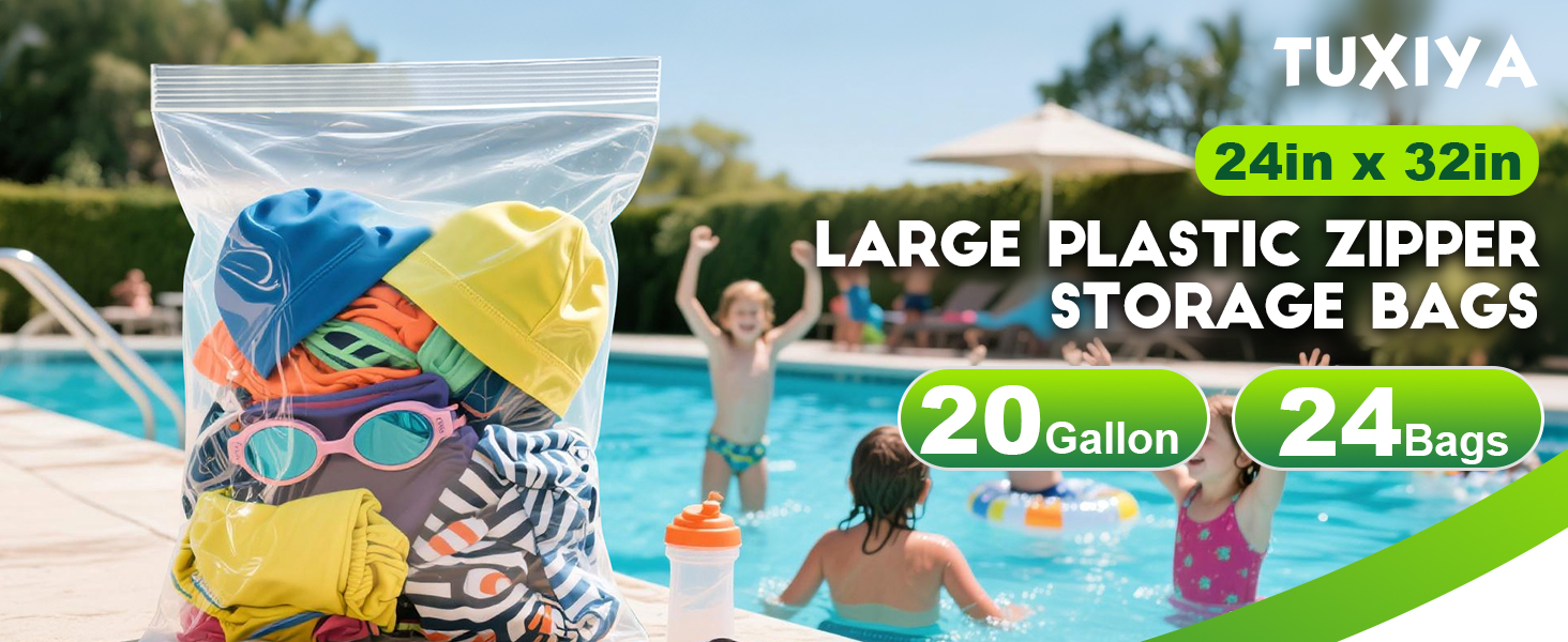 【20 Gallon Zipper Bags】: Our extra large zipper bags for storage 20 gallon, gallon zipper bags 24" wide x 32" tall, offering ample space for all your storage needs. Each pack includes 24 durable large zipper bags, perfect for comforters, pillows, seasonal clothing, stuffed animals, and other large household goods, allowing for maximum space utilization.
