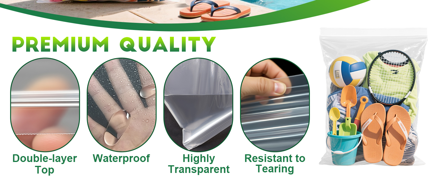 【Versatile, Durable Extra Large Zipper Bags】:Perfect for home, travel, or moving, offering neat storage for shoes, toiletries, linens, toys, and more. Their water-resistant, leak-proof design provides extra protection, making them ideal for everything from freezer storage to compact packing. The clear, space-saving style helps organize belongings, allowing you to separate skincare, towels, and essentials for hassle-free trips or relocati.or outdoor use.