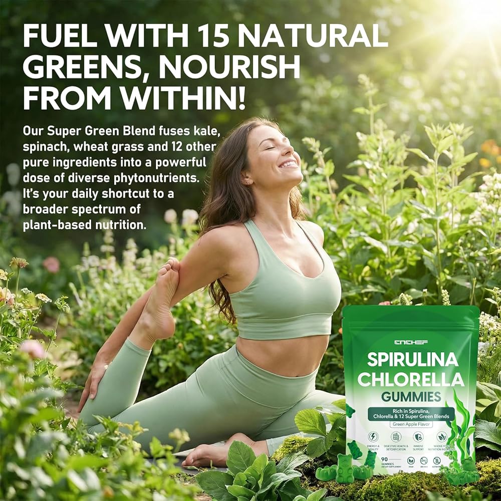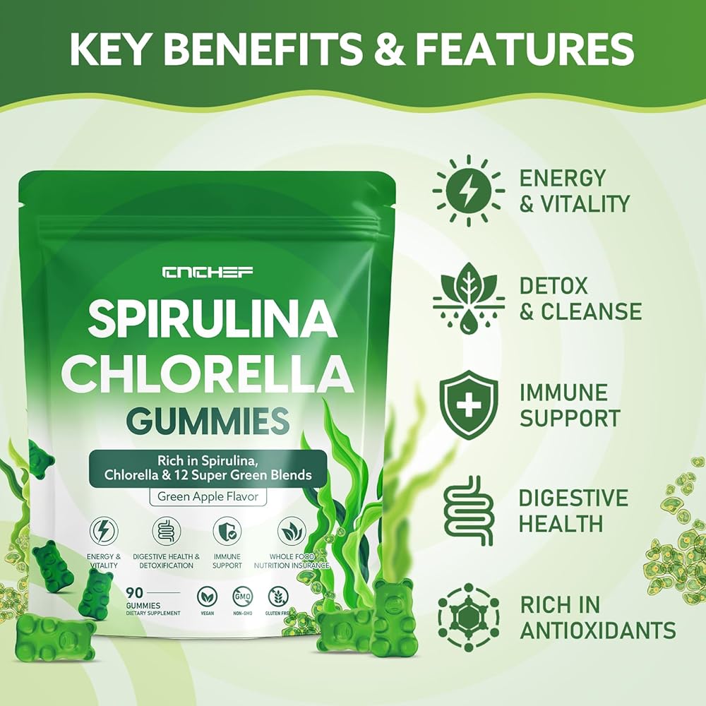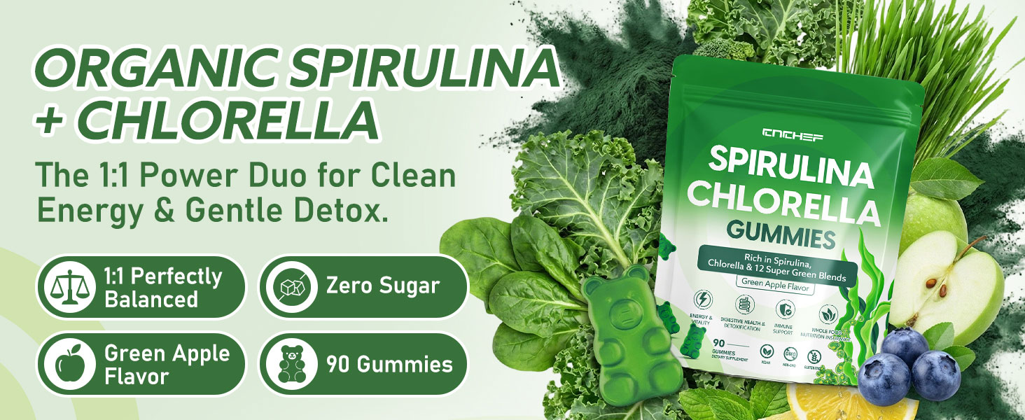 Harness the Power of Ancient Superfoods in a 1:1 Ratio: Fuel your body with nature's original superfood duo. These gummies combine Spirulina, packed with plant-based protein and B-vitamins for energy, with Chlorella, a natural detox champion. This perfect 1:1 blend works synergistically to boost vitality, support cleansing, and enhance overall wellness, delivering pure, nutrient-dense goodness in every serving