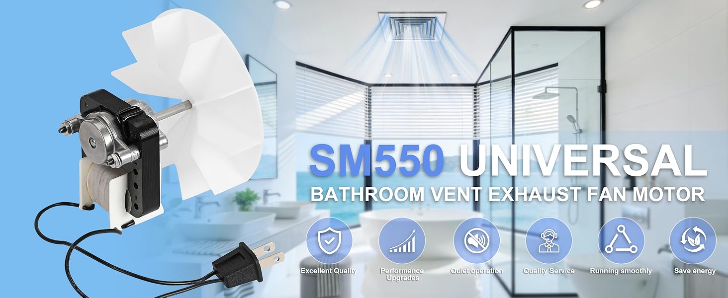 WIDE COMPATIBILITY: Replacement Bathroom Fan Motor Replacement Compatible for Brands Nutone Broan, Gulf Motors, Uppco, Ventorola E498-1, Sears 569, Dayton, etc, SM550 Bathroom Fan Motor Replacement Replaces EM550, ERM550, C01575, YJF6158, 65100, VFM100, C65878, C-65878, E498-1, 82423K, K111, EM750, 33-100, TJ90SM550, 4m209a, AP4503240, F784A, 763RLN