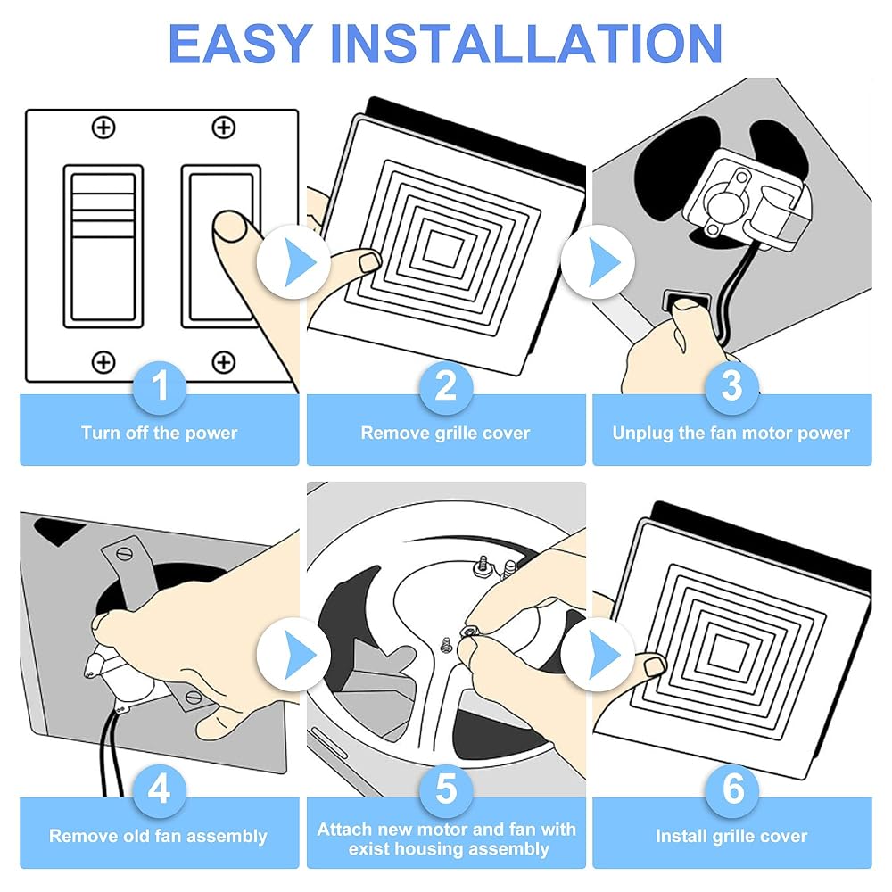 EASY INSTALLATION: bathroom exhaust fan motor replacement No need for enlarging holes, direct replacement, uses standard mounting hole spacing, exhaust fan motor compatible with most older bathroom fans on the market (compatible with older models such as Broan/Nutone), simply align the screw holes at home and install