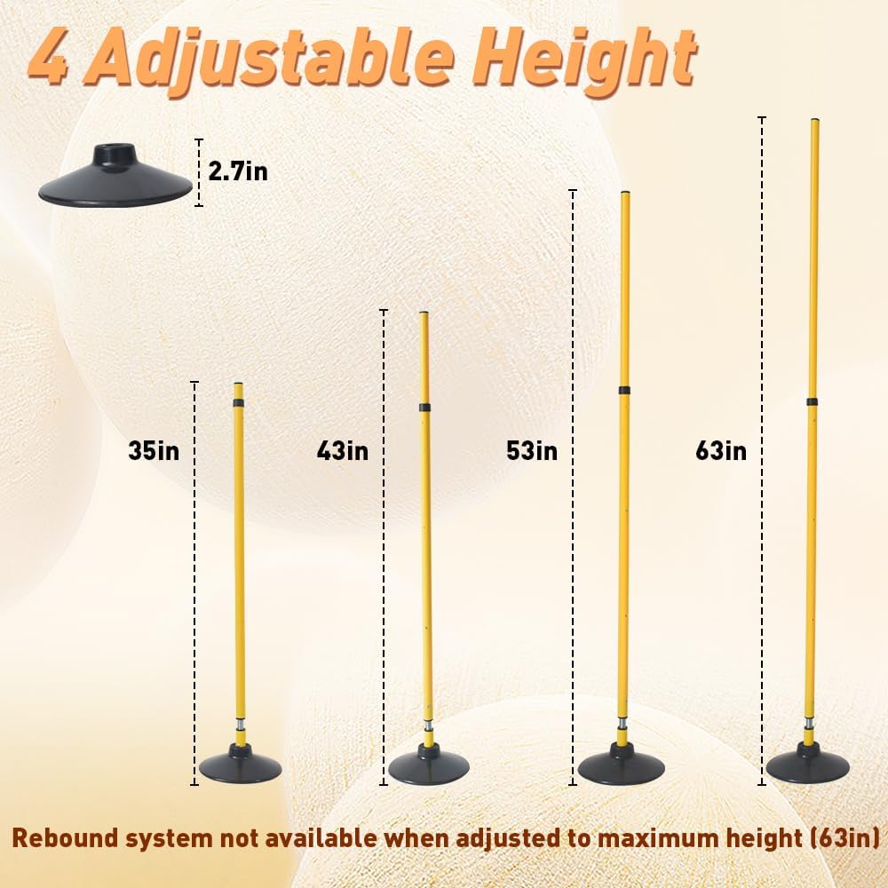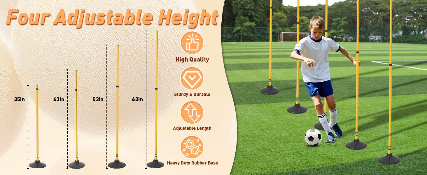 【Adjustable Height】The agility training pole adopts a segmented telescopic design, telescopic design with four adjustable height settings (35'',43'',53'',63''). Different heights adapt to the training of athletes of different ages.