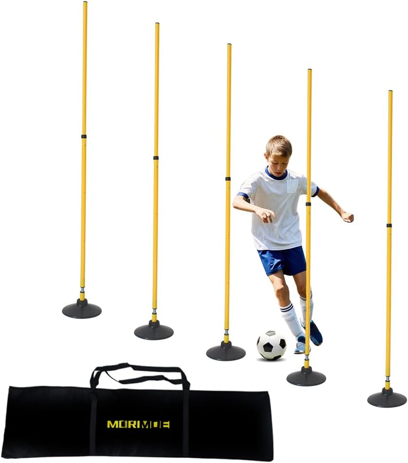 Adjustable Agility Training Poles with Carry Bag - Rebound Tumbler Design, Weighted Rubber Base, Detachable Speed Training Sticks, Slalom Drills, Ball Control Training, Indoor Outdoor