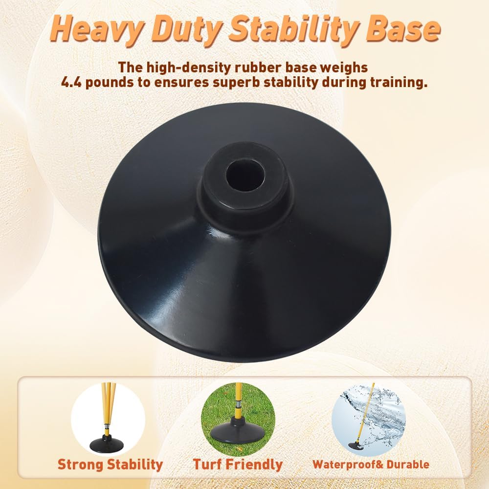 【Heavy-Duty Stability Base】Unlike traditional agility poles that are inserted into the ground, our poles feature turf-friendly bases that protect outdoor lawns and artificial turf. Each pole with base features a 4.4 pounds heavy-duty rubber foundation. The high-density rubber base ensures exceptional stability during intense training sessions.