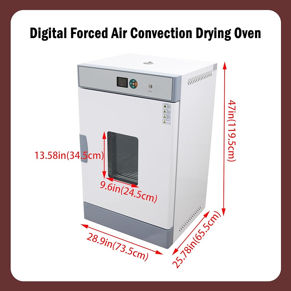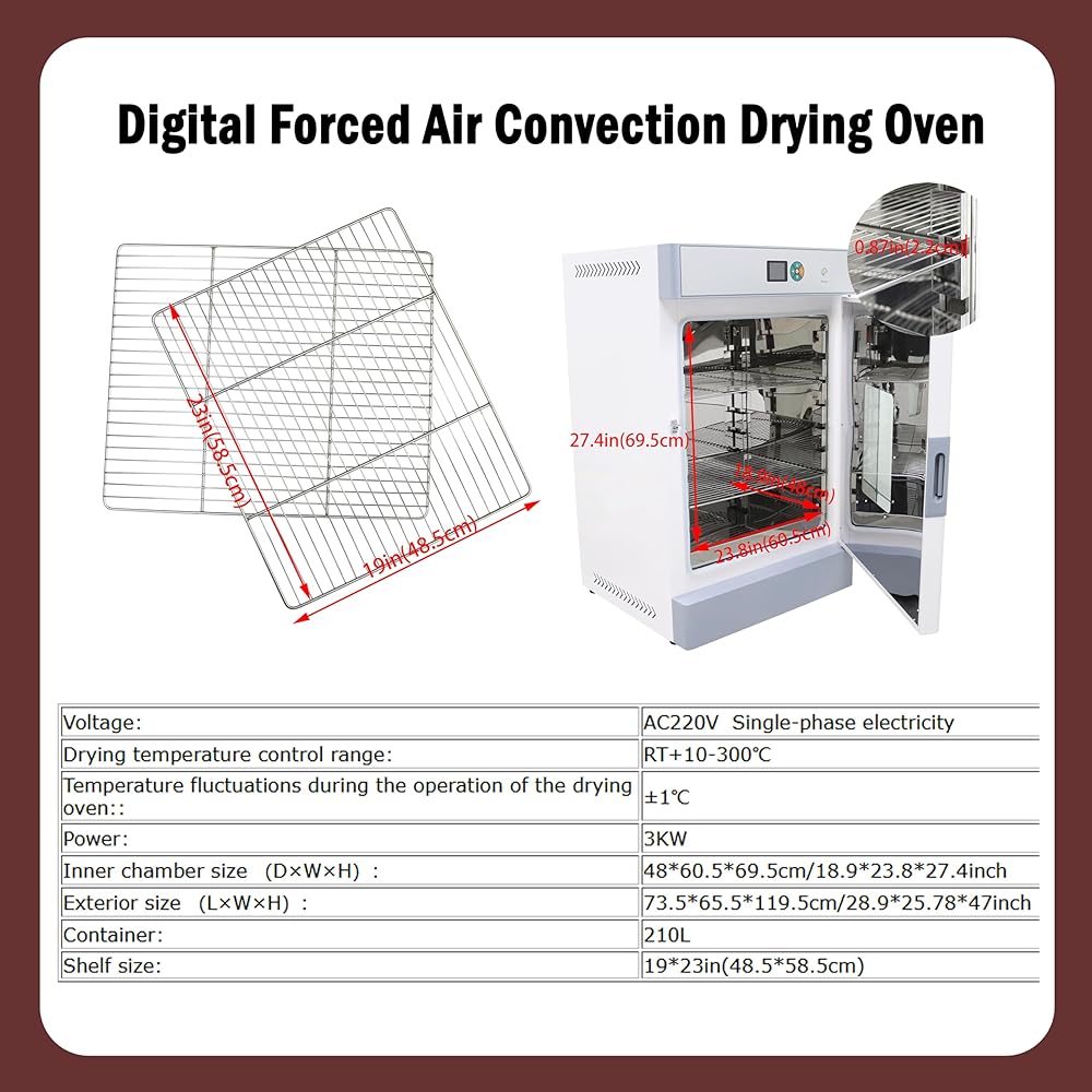 [Intelligent Temperature Control] The electric blast drying oven is equipped with an intelligent digital PID temperature controller, which has functions such as timing, over temperature alarm instructions, temperature deviation correction, and temperature self tuning control.