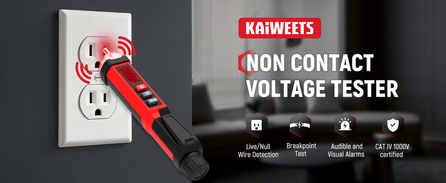 KAIWEETS Non-Contact Voltage Tester Pen, Dual Range AC 12V/70V-1000V Electrical Tester with LCD Display, CAT IV 1000V, Signal Percentage, Buzzer Alarm, Live Wire Detector and Breakpoint Finder