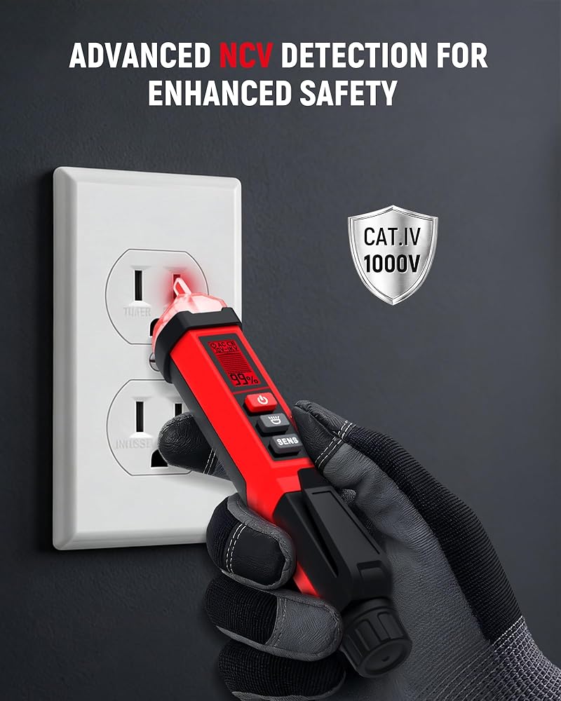 【CAT IV 1000V Safety Rating】The KAIWEETS non-contact voltage tester is rated CAT IV 1000V and designed to meet essential electrical safety standards. With double insulation and advanced NCV technology, it detects live wires without direct contact, helping reduce the risk of electric shock. Ideal for electricians, maintenance technicians, and home electrical inspections.