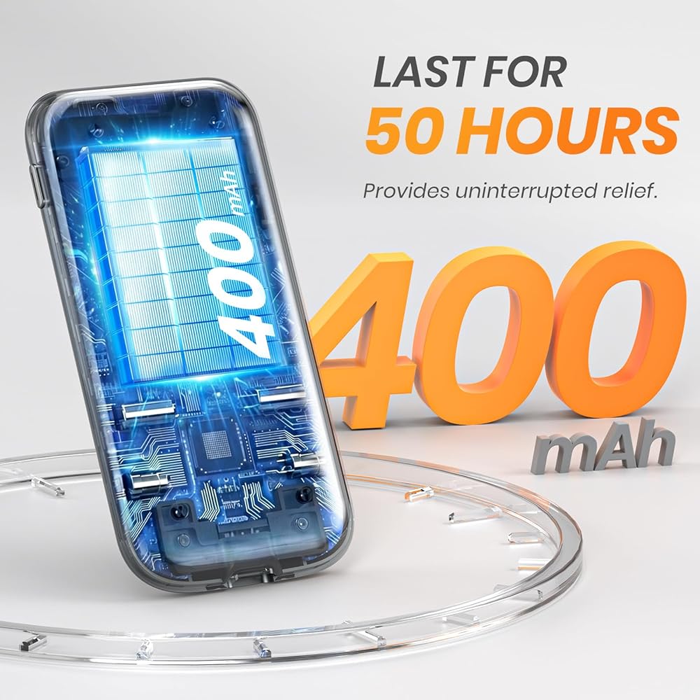 Powerful Battery for Up to 50 Hours of Use: Equipped with a rechargeable 400mAh battery, this EMS muscle stimulator lasts up to 50 hours, and the continuous mode provides uninterrupted relief. Plus, this TENS unit supports multiple charging options, including wall chargers, power banks, and laptops. A full charge takes only 2 hours, letting you enjoy treatment anytime