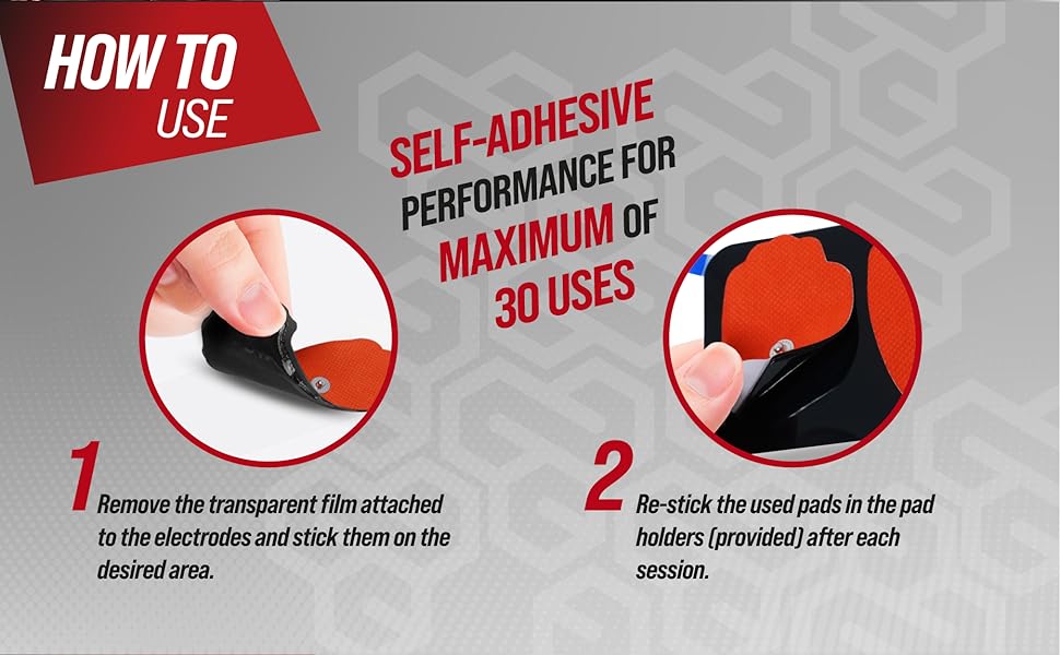 Premium Adhesive: The low impedance solid electrode gel used on these TENS pads provides excellent self-adhesive performance for a maximum of 30 uses. They are easy to remove with no sticky residue left behind.