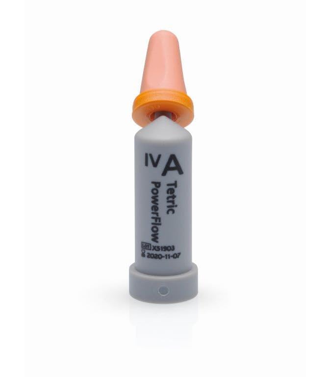 Tetric EvoFlow Bulk Fill - Shade IVA, 20 x 0.2g Cavifils. High Performance Posterior Flowable. Features opacity shifting technology and the new Ivocerin light-initiator for the high-performance dentin replacement material. 20 x .2gm/Pk IVA. PowerFlow Cavifil. Tetric. Refill. Tetric PowerFlow is a flowable, light-curing radiopaque composite for the direct restorative treatment in posterior teeth. As its opacity increases during polymerization, Tetric PowerFlow is also suitable for discoloured tooth structure.It is applied as initial layer in increments of up to 4 mm in Class I and II restorations. Tetric PowerFlow cures with light in the wavelength range of 400– 500 nm.