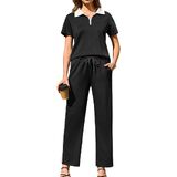 Flattering Sweatshirt: Womens 2 piece outfits feature fashionable lapel zip neckline and short sleeve, giving you the freedom to customize your casual and comfortable wearing