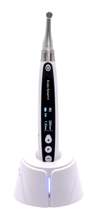 Woodpecker Endo Smart+ Brushless Endo Motor, 6:1 Super Mini Contra-angle. 360° rotatable contra-angle. Combined length determination mode. Speed range: 100 - 1200 RPM. Torque range: 0.4 - 5.0 Ncm. Wireless charging. Built-in over 30 mainstream file systems.