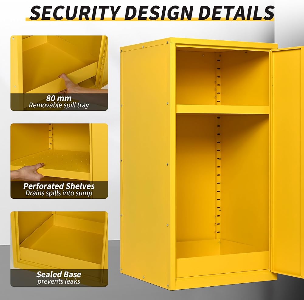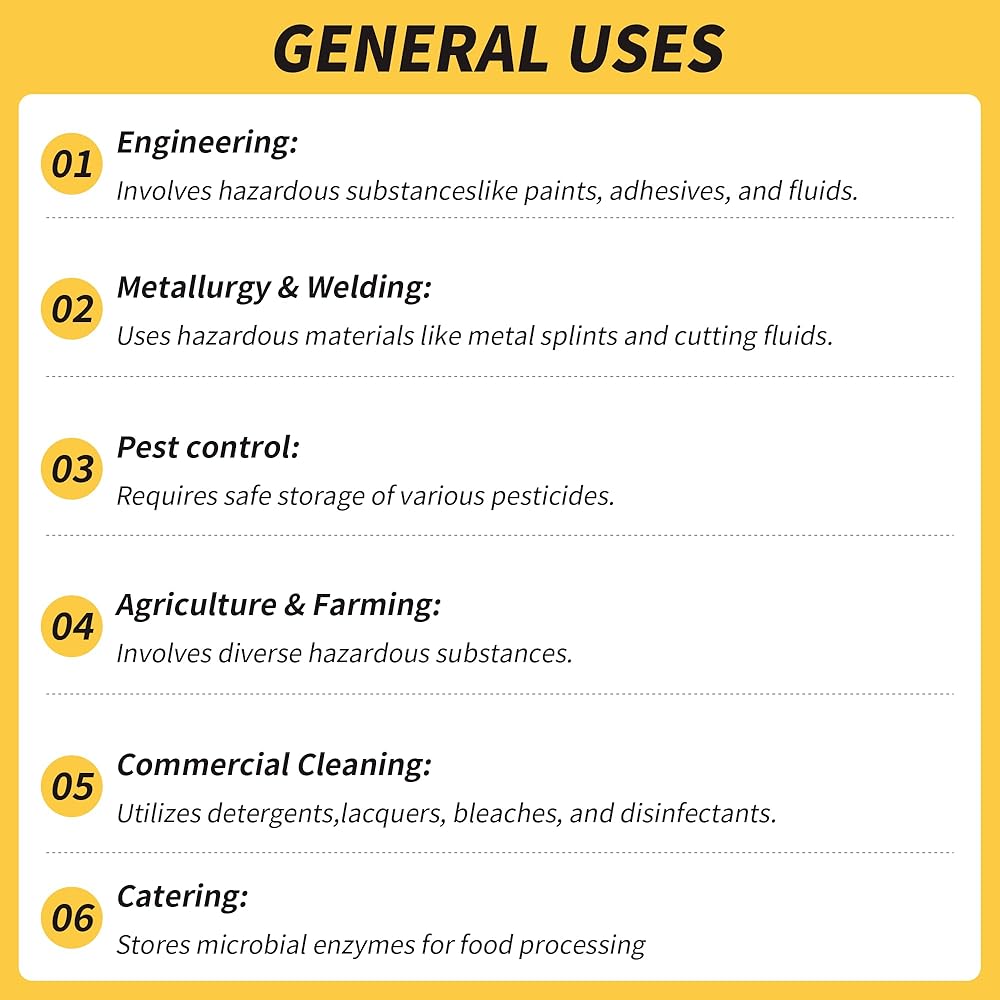 Professional Flammable Storage Cabinet: Designed as a professional flammable storage cabinet, it is suitable for storing gasoline, alcohol, solvents, paint, and other combustible liquids. Perfect for use in garages, workshops, laboratories, warehouses, and industrial facilities