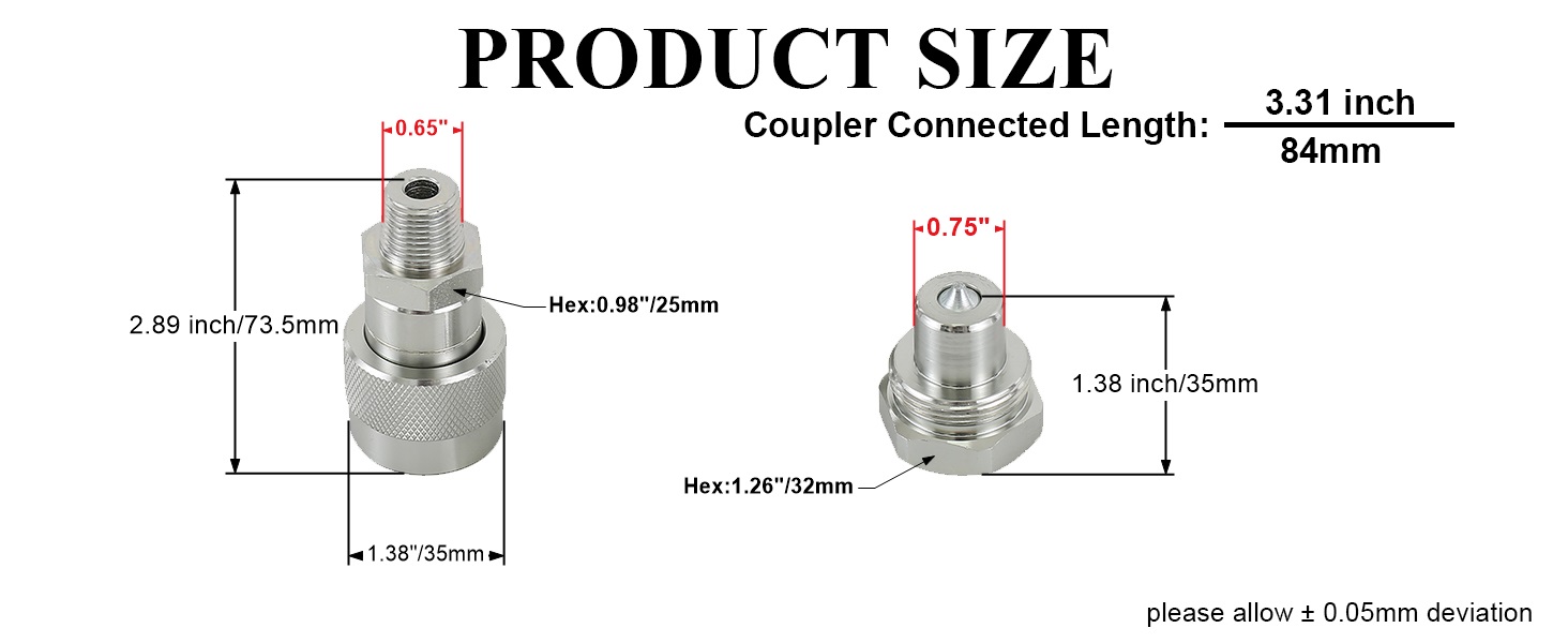 Package Includes: 1 set of 3/4"npt hydraulic quick connect coupling fittings, with dust caps.Same as the photos.