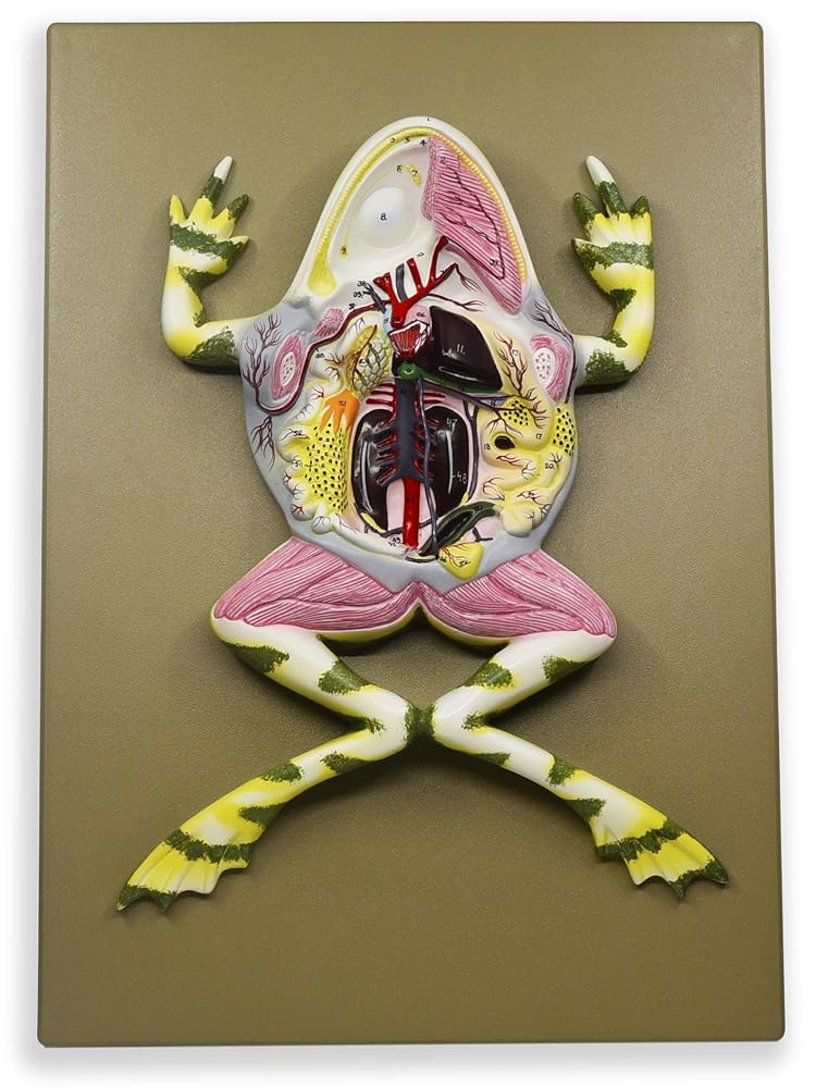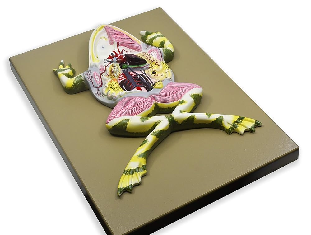 3-dimensional frog dissection teaching demonstration model with lifelike design built from a custom mold Made of polyvinyl chloride (PVC) plastic for durability and mounted onto backboard Shows internal anatomy - Ventral cut reveals internal organs - Anatomy is numbered for easy reference Includes highly detailed keycard Great alternative to the costs and cleanup of dissection in the classroom - Hand-painted using vibrant eco-friendly paint - Designed by subject matter experts 3D frog dissection model for use in teaching demonstrations. Made from polyvinyl chloride (PVC) for durability. Model shows internal anatomy. Ventral cut reveals internal organs. Includes highly detailed keycard in English. Great alternative to the costs and cleanup of dissection in the classroom.Details Identified: Buccal cavity, upper lip, mandible, maxillary teeth, median subrostral fossa, lasteral subrostral fossa, internal naris, patch of vomerine teeth, bulging of eye ball, opening of eustachian tube, opening of vocal sac, liver, gall bladder, stomach, sleen, pancreas, bile duct, pyloric constriction, duodenum, ileum, mesentry, rectum, urinary bladder, right lung, heart, right auricle, left auricle, ventricle, truncus arteriosus, external arch, systemic arch, carotid labyrinth, internal carotid, external carotid, dorsal aorta, renal artery, iliac artery, pre caval, external jugular vein, innominate vein, sub clavian vein, post caval, renal vein, renal portal vein, femoral vein, sciatic vein, anterial abdominal vein, kidney, adrenal, ureter, ovary, fat body, oviduct and uterus. The base measures 11.6" wide, 16.5" long and 3" tall. Science education products incorporate applied math and science principles into classroom and homeschool-based projects. Teachers in pre-K, elementary, and secondary classrooms use science education kits and products alongside science, technology, engineering, and math (STEM) curriculum to demonstrate STEM concepts and real-world applications through hands-on activities. Science education projects include a broad range of activities, such as practical experiments in engineering, aeronautics, robotics, energy, chemistry, physics, biology, and geology. EISCO Scientific manufactures and supplies lab equipment for education and industry. The company, founded in 1968 and headquartered in Rochester, NY, meets International Organization of Standardization (ISO) standard 9001: 2000.