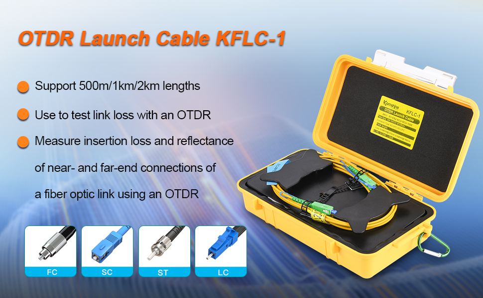 --- يمكن استخدام كل كابل إطلاق Otdr ككابل Otdr للإرسال والاستقبال، وكلاهما ضروري للقضاء على البقع العمياء عند قياس فقدان الخط الكامل للألياف الضوئية باستخدام Otdr.