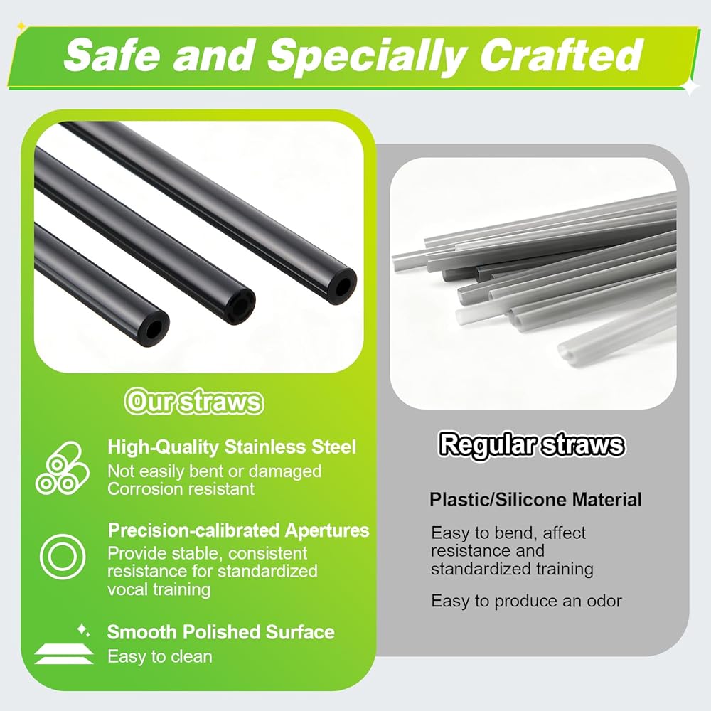 Durable & Portable: Crafted from high-quality stainless steel, these vocal training straws are built to last. Their smooth surface resists odor and stains, ensuring a long-term use. The included portable storage tube makes it easy to train anytime, anywhere - whether at home, on the go, or before a performance