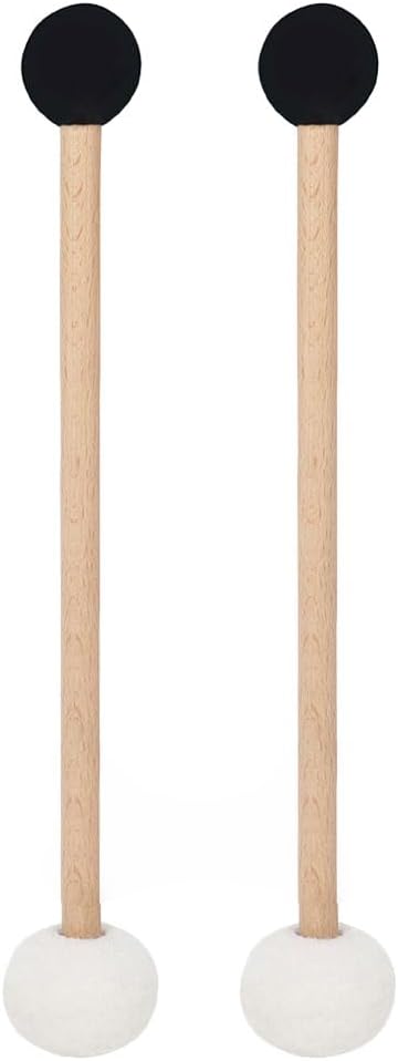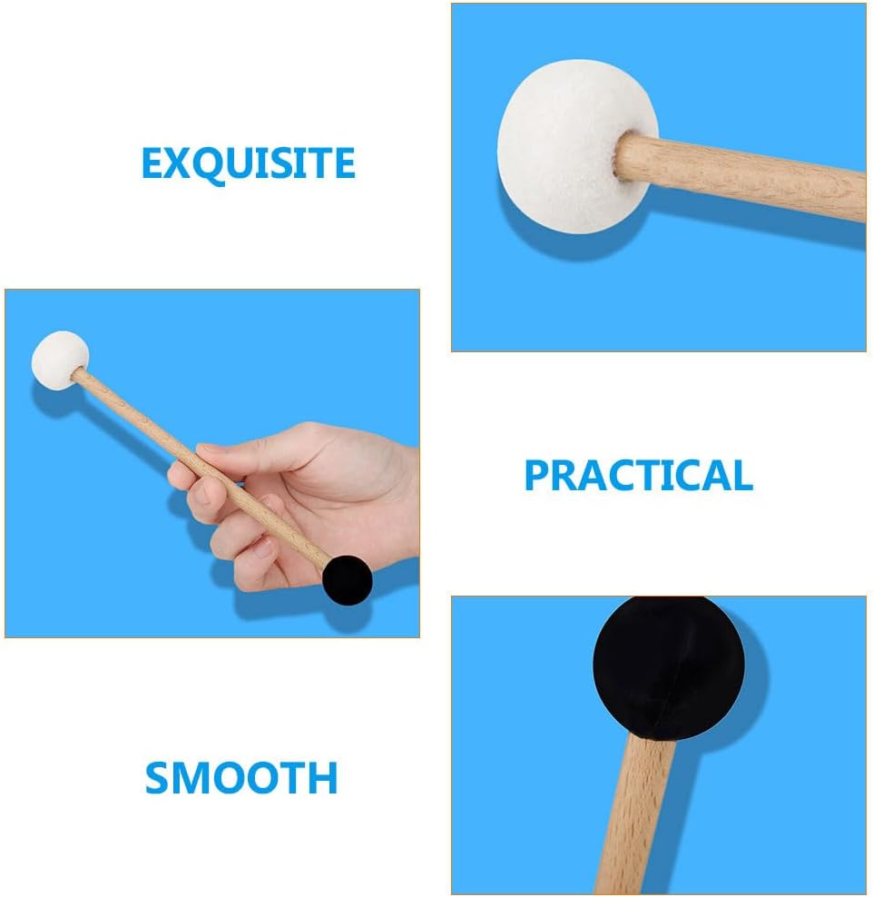 Felt rubber drum stick--well-polished wooden handle drum mallet is comfortable to grip, which can help you practice better,percussion drum stick