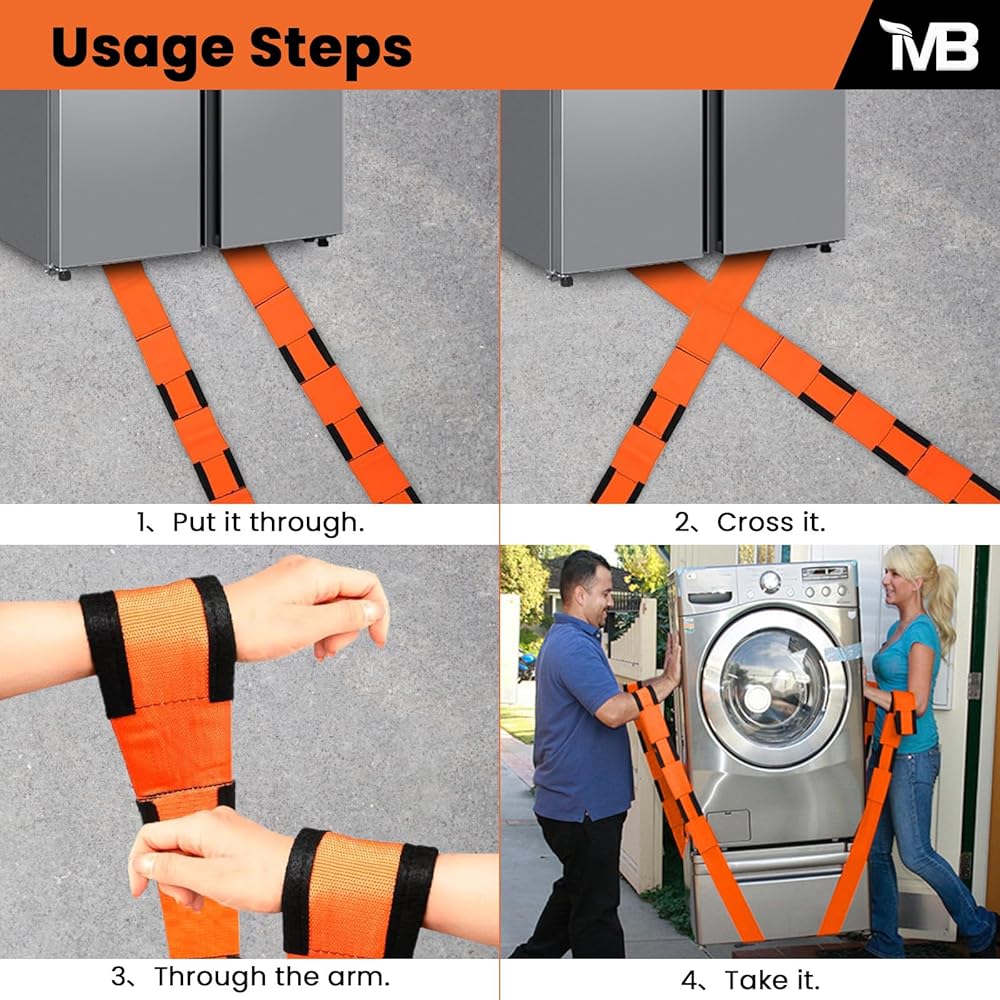 • 【Upgrade and Widen Straps】Widened to 3.15 inches and constructed from high-strength polypropylene fiber, they offer exceptional durability and comfort while supporting up to 850 lbs.This 2-person lifting system makes moving heavy appliances, sofas, and mattresses remarkably stable and secure