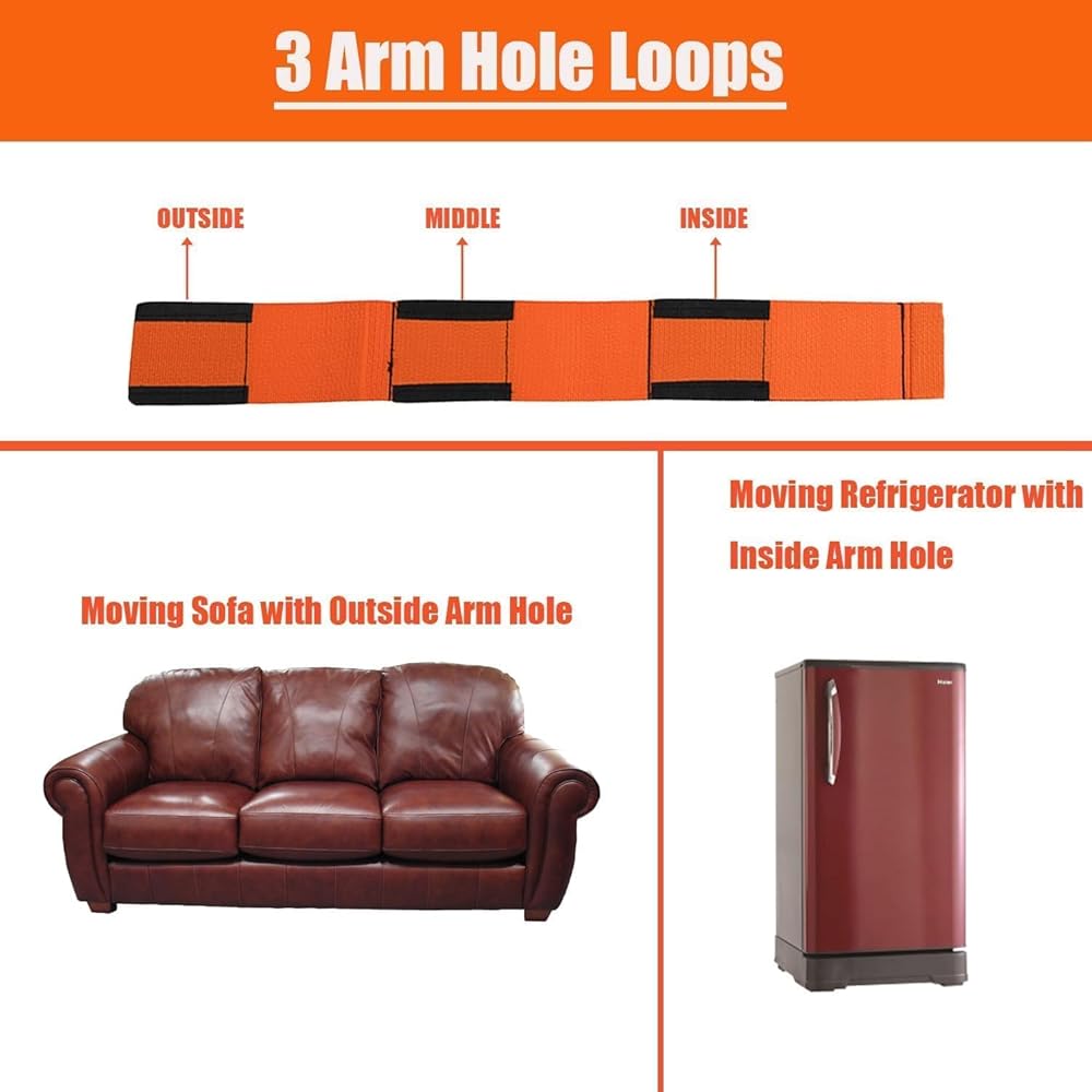 • 【Three-Arm Ring Adjustable System】 Each 9.19-foot strap features three arm loops at both ends, allowing two movers of any height to easily customize the length for optimal leverage when moving everything from compact furniture to oversized sofas