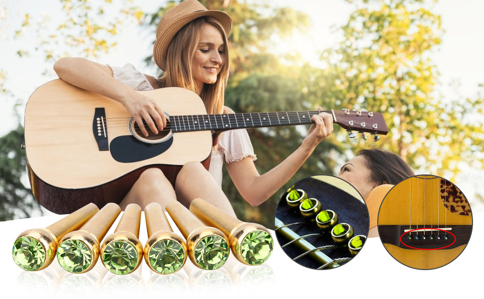 CRYSTAL GLASS DECORATE: Brand new and guitar bridge pins nail with crystal glass dot decor on the head which make it eye-catching and can enhance the level of your guitar.