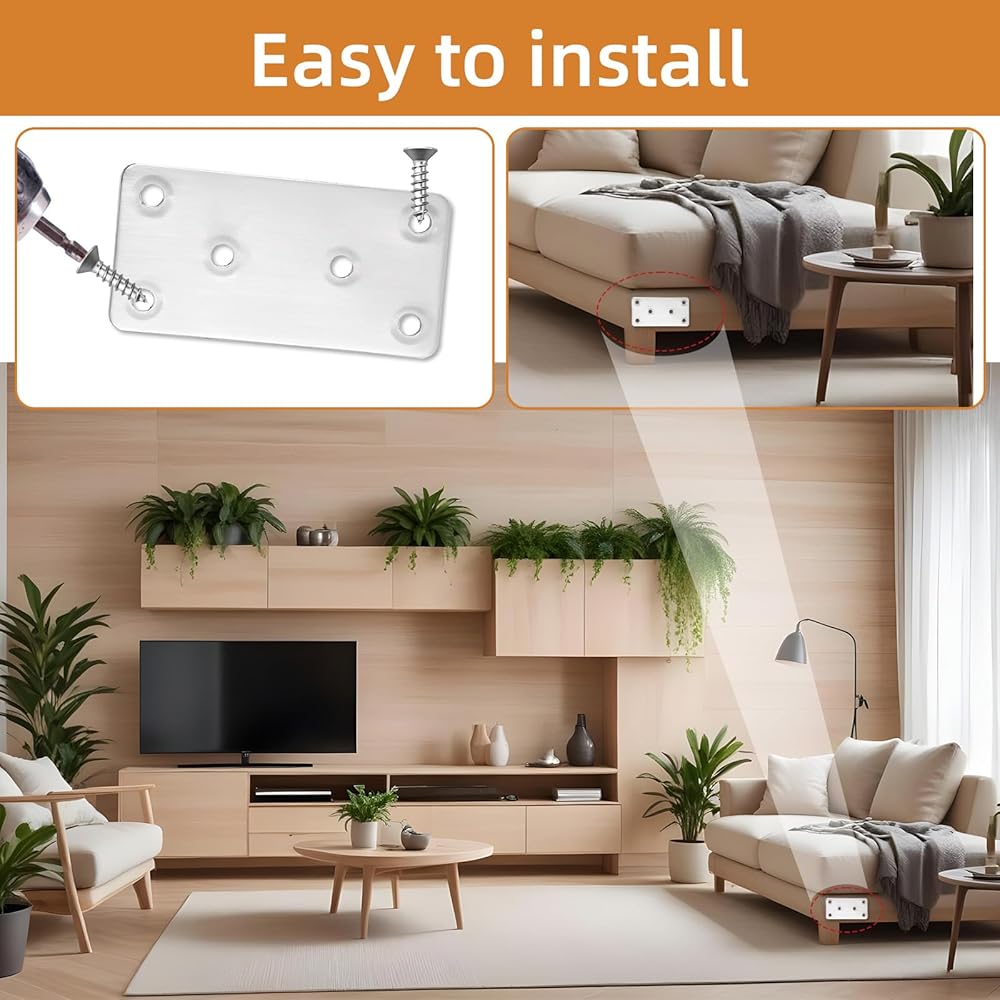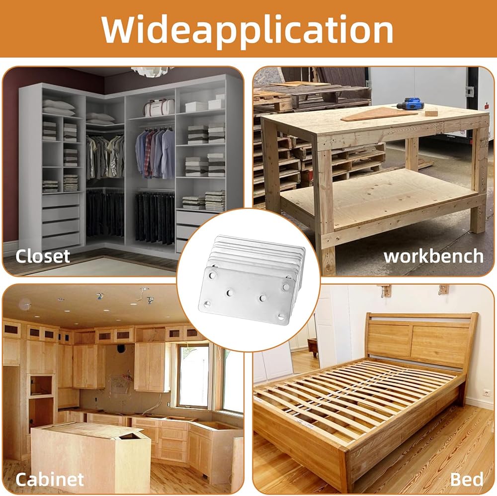 Widely Used: These Stainless steel corner brackets are widely used to stabilize and reinforce wooden furniture and to connect furniture joint corner board, such as table, bed, wooden fence,bookshelf, shelving planks, office desk and more.