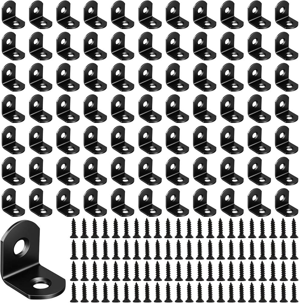 100 Pack Stainless Steel L Brackets, Heavy Duty Corner Brace Bracket, 90 Degree Right Angle Bracket for Wood Chair Bookshelf Cabinets Furniture, with Screws, Black(20mmx20mm)