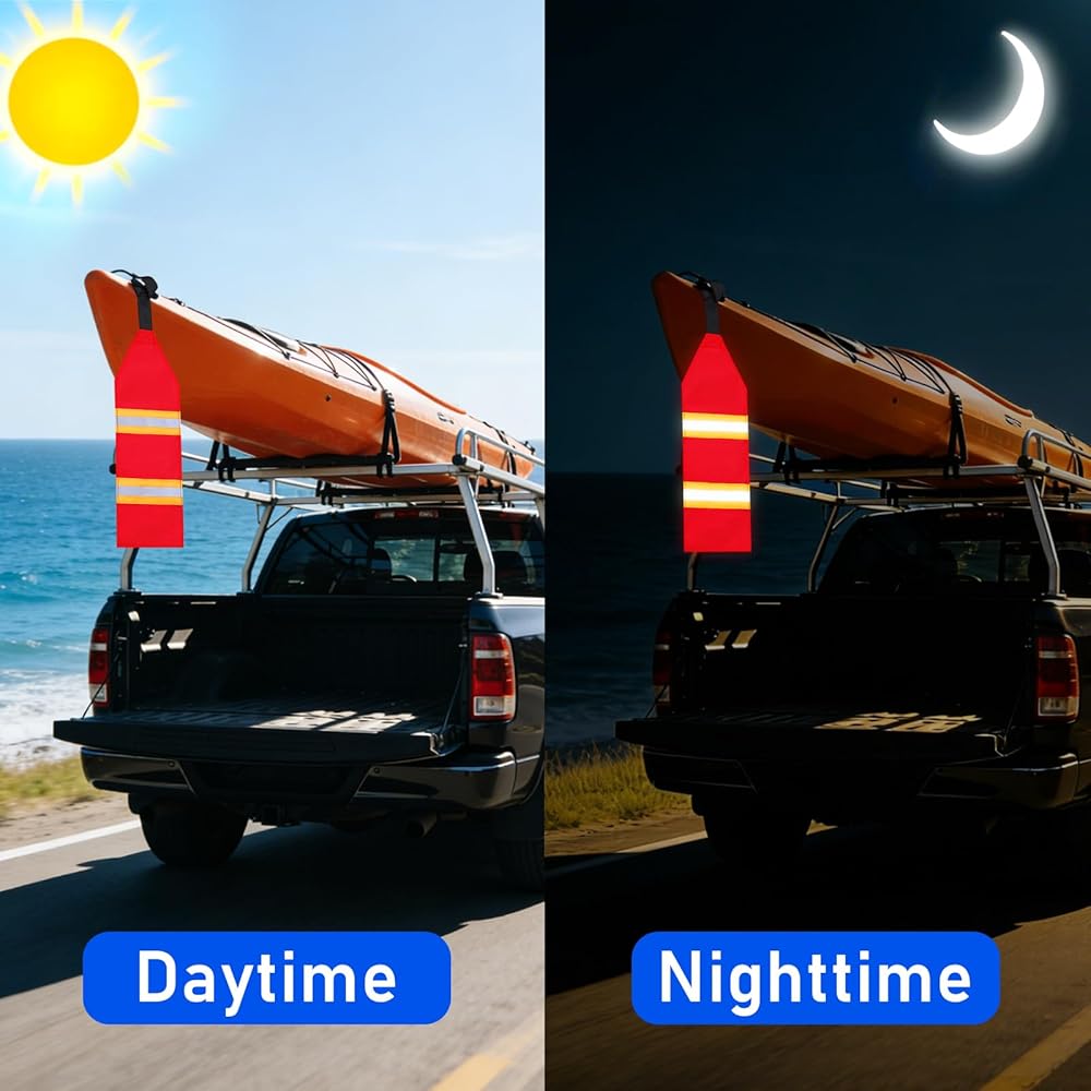 • 【Added Visibility & Safety】-- Our Kayak Trailer Safety Flags are designed with eye-catching red color, featuring reflective strips in the middle, creates good visibility from a distance day or night, making you more visible to other boats and paddlers to protect travel safety, particularly in low-light conditions or dense traffic