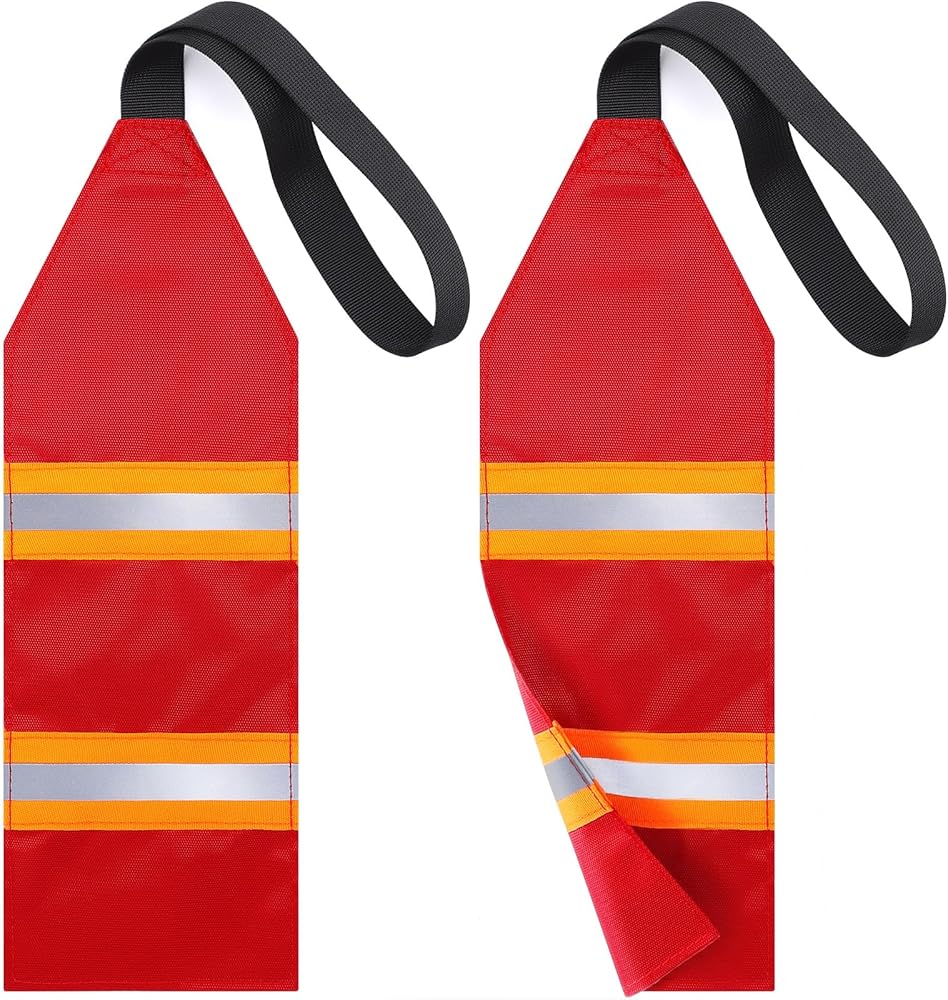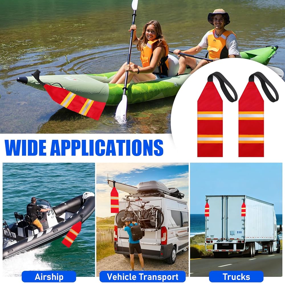 TOBWOLF 2PCS Reflective Kayak Safety Flags, 14"x4.7" Safety Travel Flag for Boat Trailer Canoe SUP Towing Warning Flag with Webbing, High Visibility Red Flags for Truck Loads Safety Accessories Kit