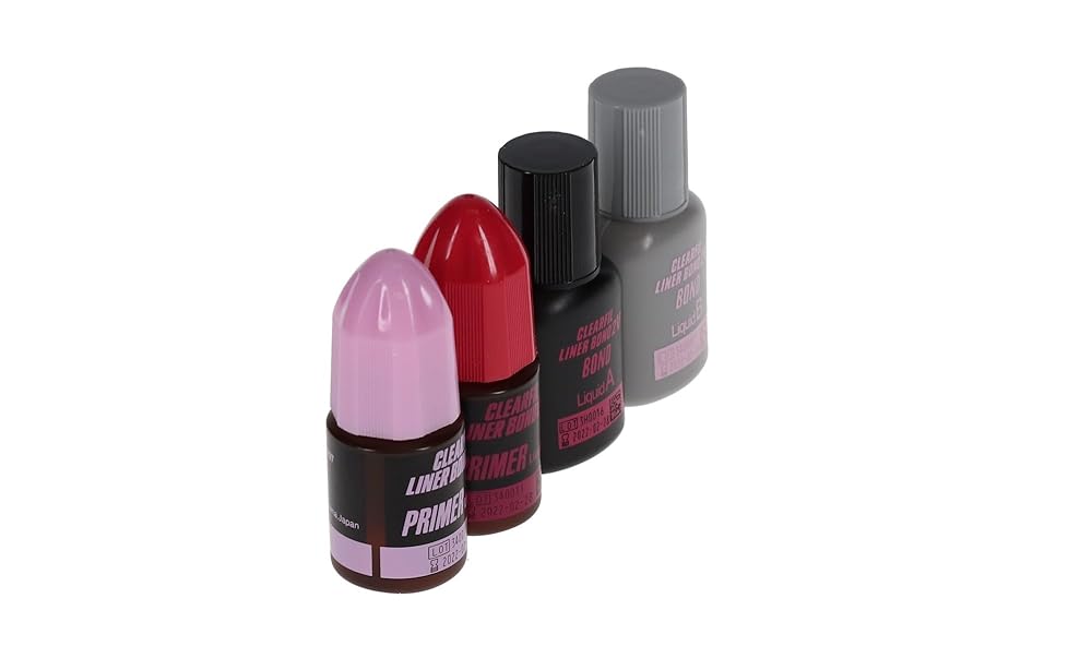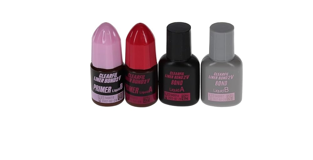 Clearfil 2V dual-cure liner bond standard kit: 1 primer liquid "A". 1 primer liquid "B", 1 bond liquid "A", 1 sponge pledget, 1 mixing dish, 1 light-blocking plate, 1 system tray, 1 brush holder and 50 disposable brush tips.