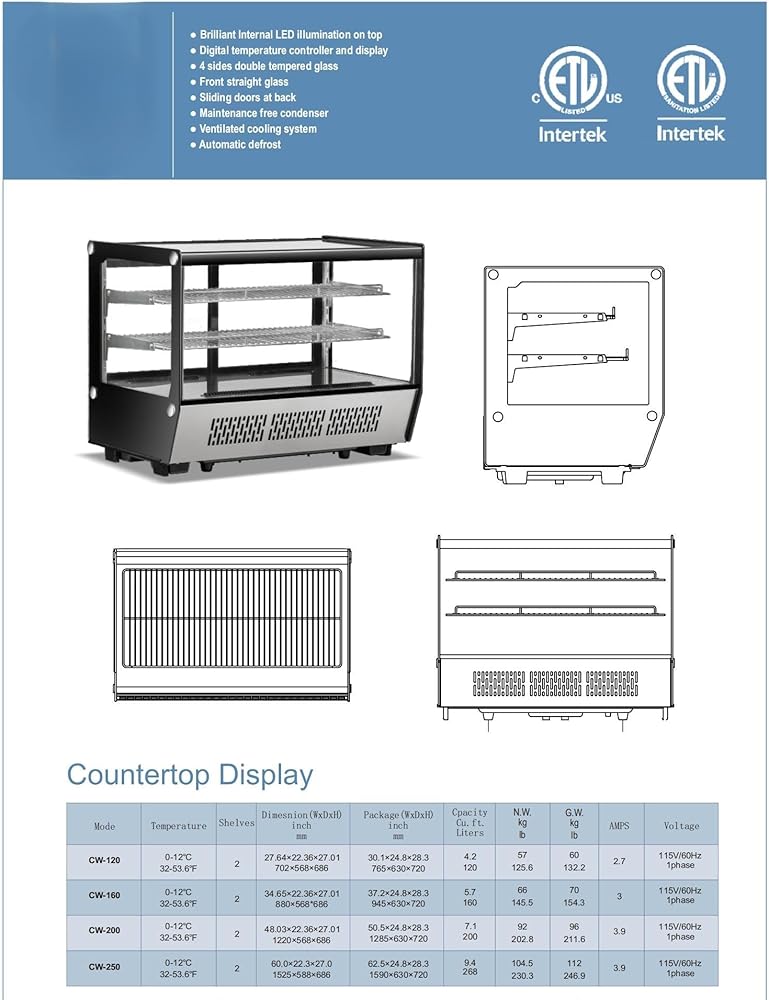 Certification, Extended Warranty: ETL certified for safety and sanitation, States/cities may require all commercial kitchens use NSF or ETL certified products; Enjoy a 3-year all-parts, 6-year compressor, and 1-year labor warranty