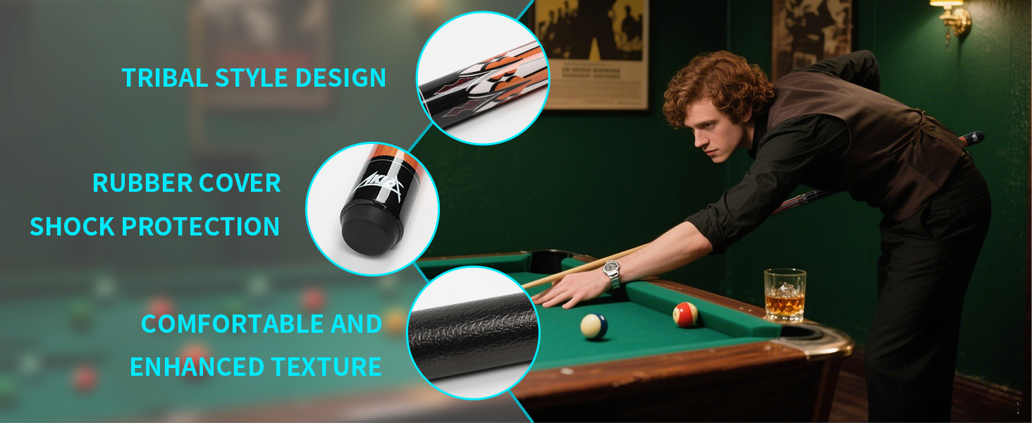 Piano Lacquer Finish:The professional pool cue boasts a high-gloss, multi-layer finish that shields the wood from moisture, fading, and warping