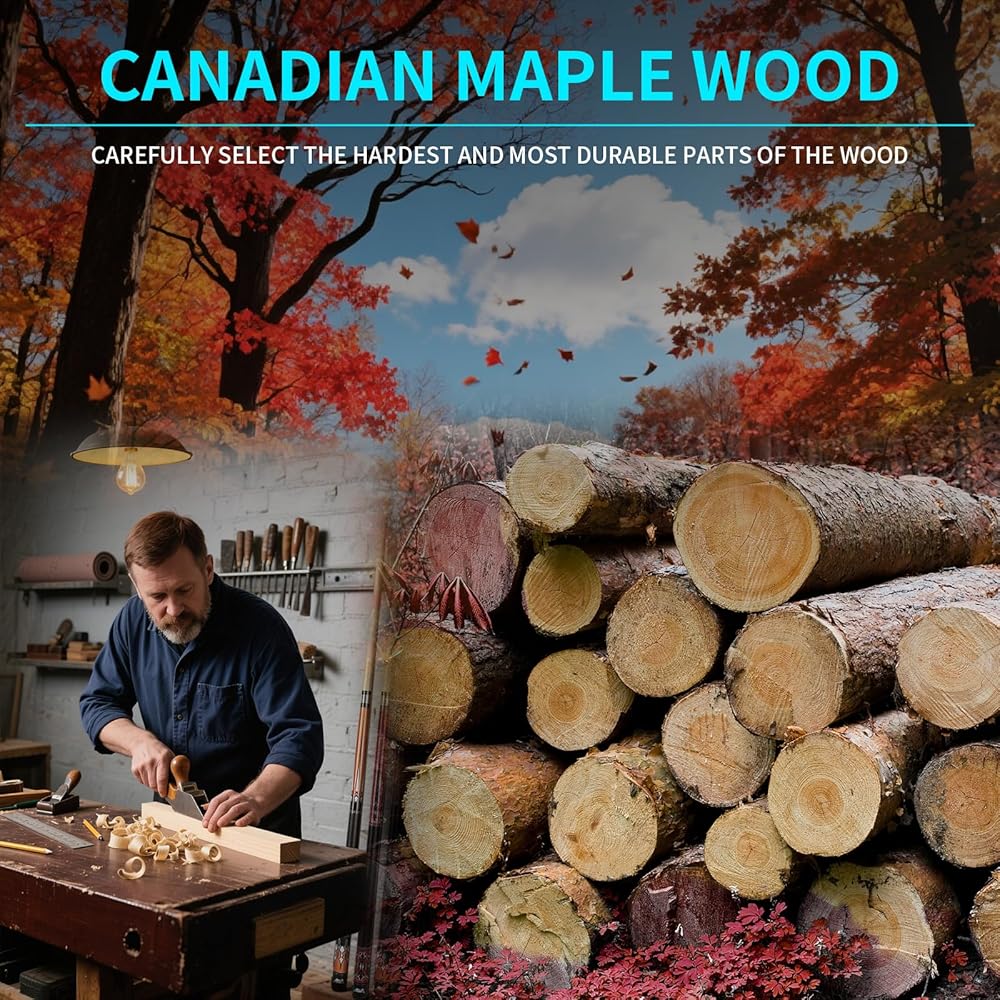 Premium Shaft – Canadian Hard Rock Maple:Crafted from top-grade Canadian maple, this pool cue set component offers superior hardness, wear resistance, and stability, preventing warping and cracking for a reliable, high-performance billiards cue stick