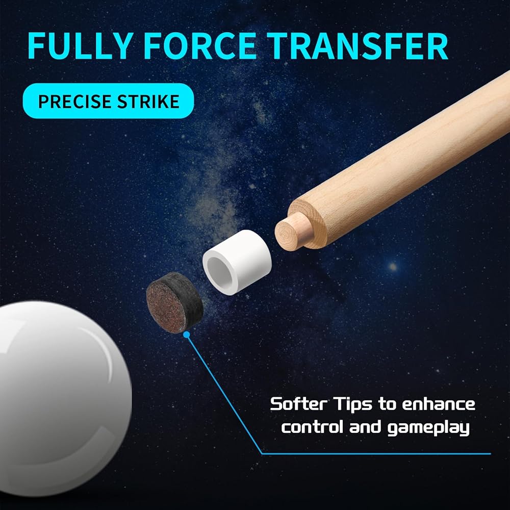 Low-Deflection Technology: Precision-crafted from premium materials and rigorously straightened, this professional pool cue set minimizes deflection for truer ball paths, giving you unmatched accuracy and command of the table