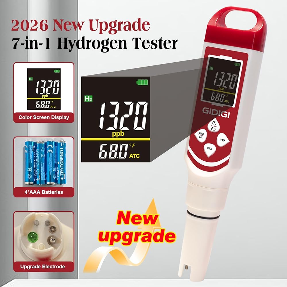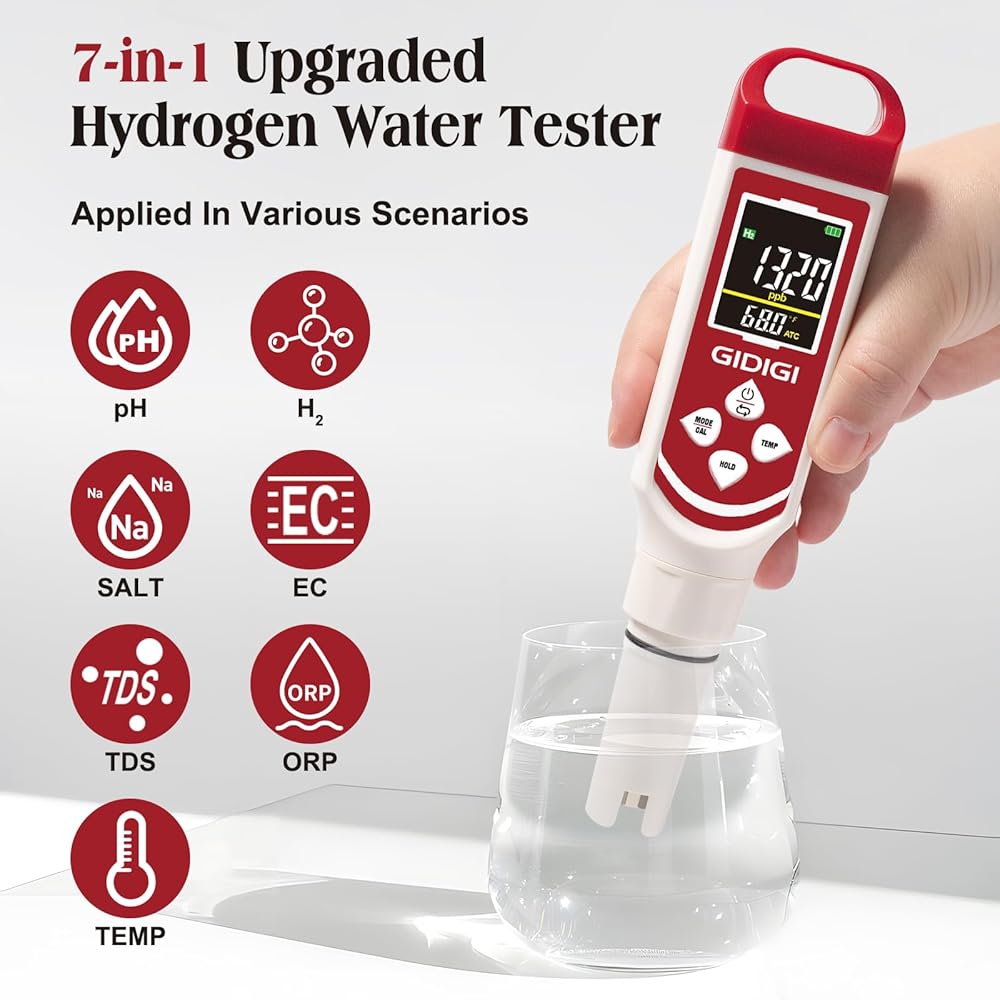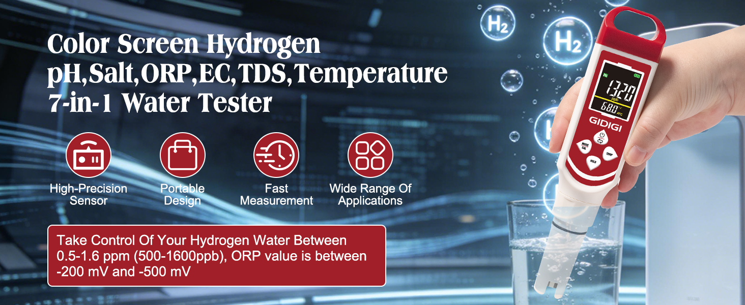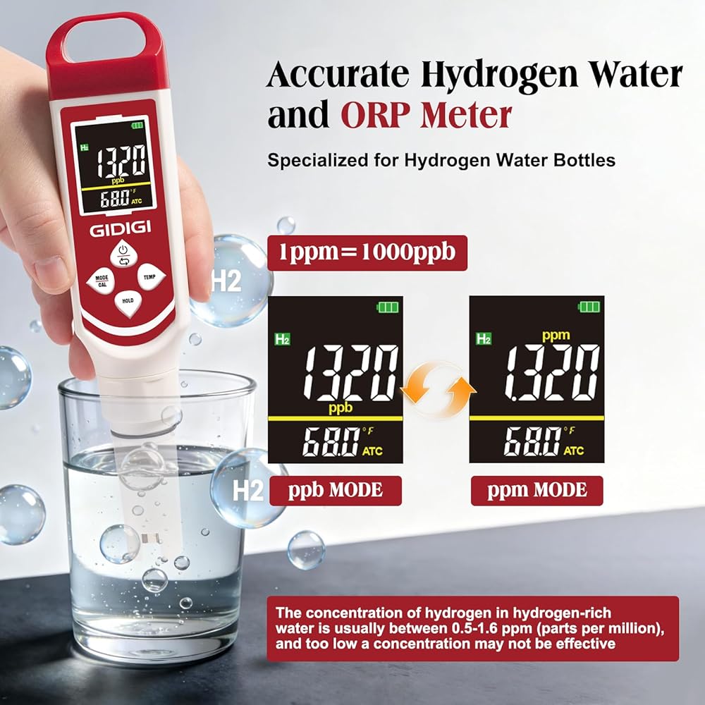 Accurately Measures Hydrogen & ORP - GIDIGI Hydrogen water tester is unlike Cheap pH Testers:This digital pH meter is verified by users to precisely test Hydrogen water (0-2400 ppb) and ORP levels—Specialized for Hydrogen Water Bottles. Ensure your hydrogen-rich water is potent and effective, giving you peace of mind about your wellness investment.