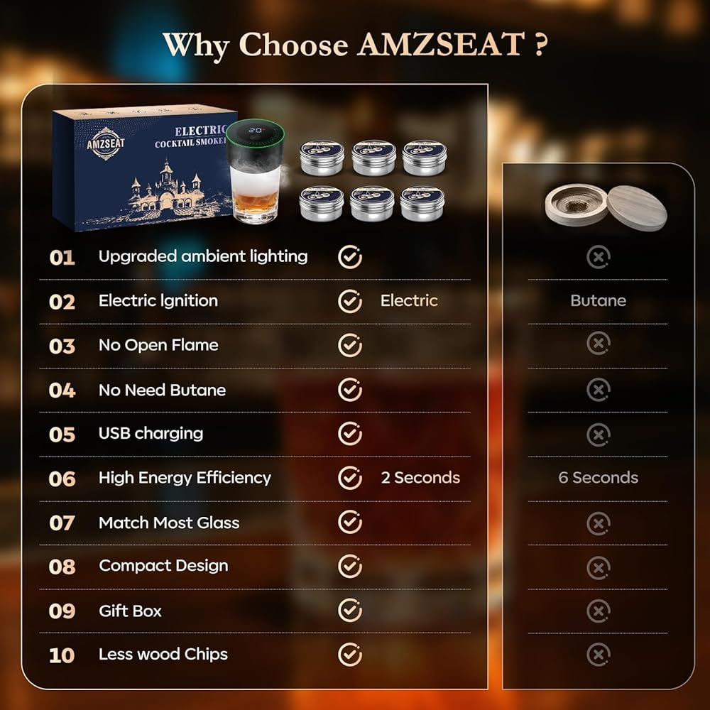 【Electric Whiskey & Cocktail Smoker Kit】Elevate your home bar experience with our electric smoker kit. It effortlessly infuses rich, smoky notes into whiskey, bourbon, old fashioneds, and a wide range of cocktails. An impressive addition for any whiskey enthusiast looking to explore craft cocktail creation.