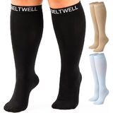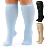 🍃 EASY TO PUT ON & STAYS UP ALL DAY - Designed for larger legs, these compression socks are easy to put on and take off without excessive tightness or discomfort. They stay up all day without rolling or sliding down, won't dig into the skin, and feel secure yet comfortable. Perfect for everyday wear or travel, they help legs feel lighter and more supported from the foot to the knee.