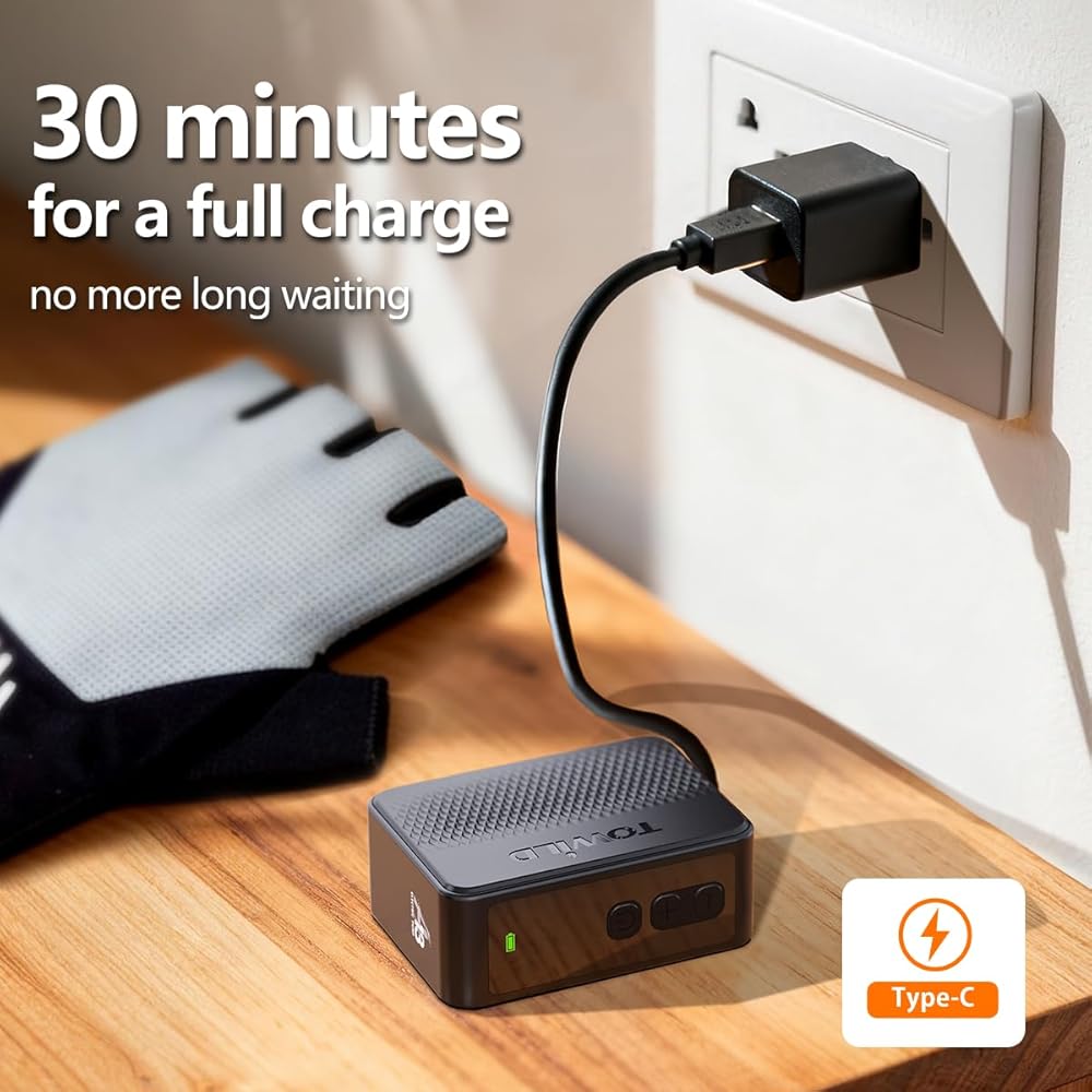 【30-MIN ULTRA-FAST RECHARGE】 Stop waiting 2-3 hours for a full charge. Featuring advanced TYPE-C fast-charging technology, this electric bike pump can be fully powered from 0 to 100% in just 30 minutes, ensuring you are always ready for your next ride.