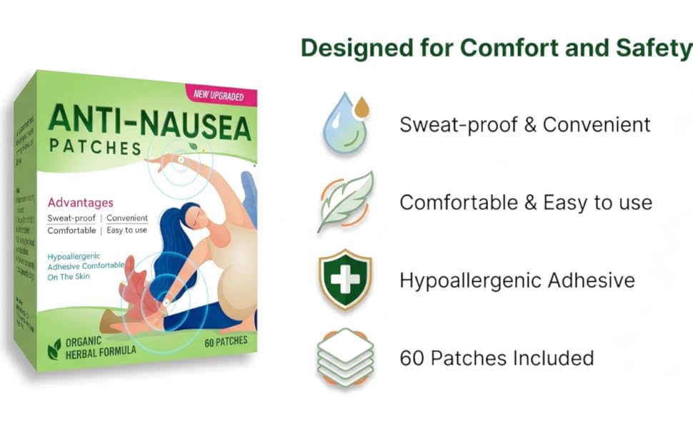 • PORTABLE AND EASY TO APPLY: Designed for on-the-go use, these individually wrapped pregnancy nausea relief patches fit perfectly in your purse or pocket, allowing for a quick application whenever nausea strikes during travel or daily errands