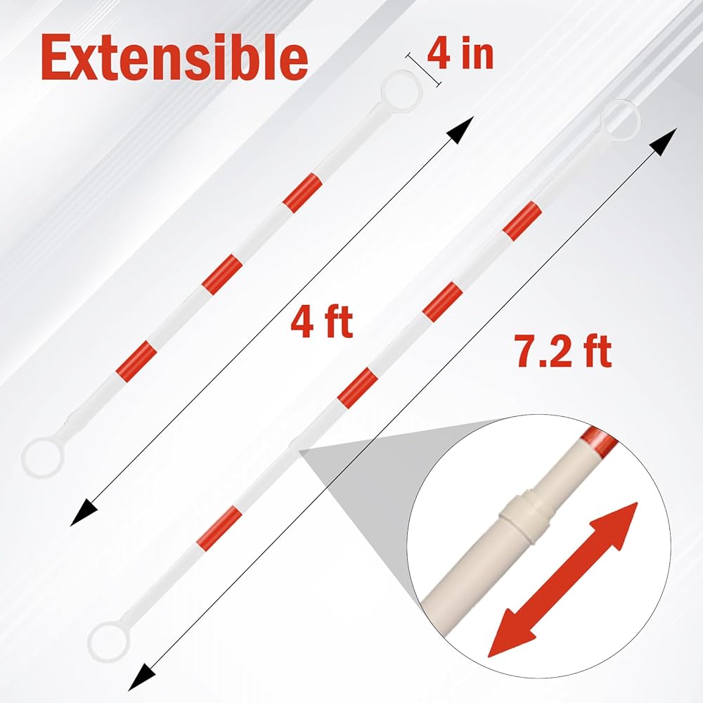 Advanced Retractable Design: With a retractable length from 4 to 7.2 feet, the extendable road cone bar with high gloss reflective film easily meets your needs; Whether you're designating a no entry zone or outlining a play area, these extendable bars are suitable for multiple scenarios